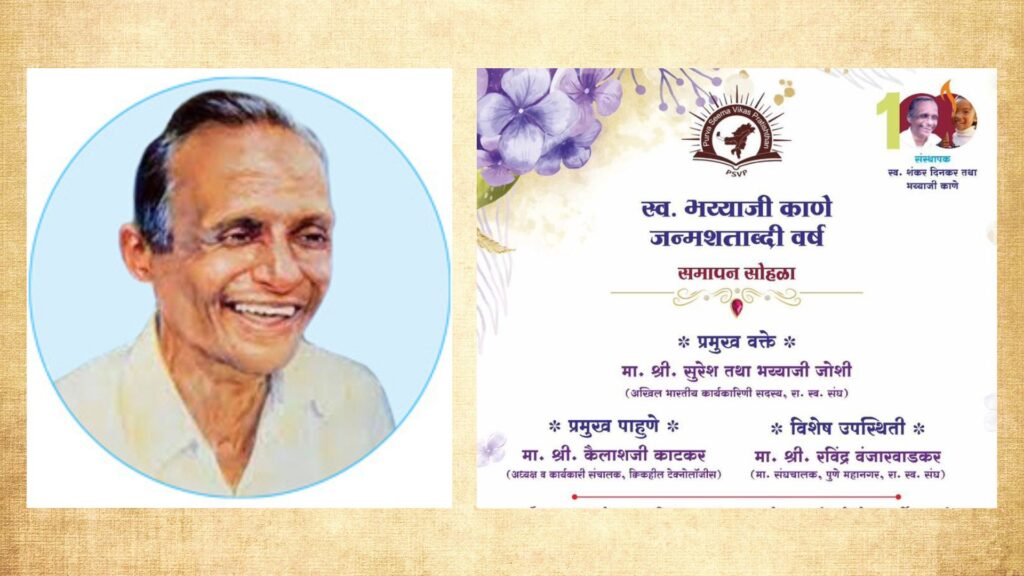 भैय्याजी काणे जन्मशताब्दी सांगता सोहळ्याचे आयोजन, भैय्याजी जोशी राहणार उपस्थित