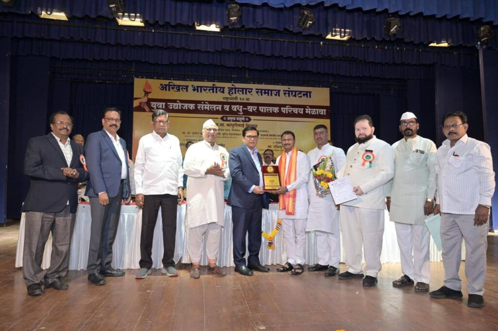 पुणे, दि. १३ ऑक्टोबर : अखिल भारतीय होलार समाज संघटनेच्या वतीने उद्योजकता मेळावा पद्मश्री डॉ. मिलिंद कांबळे यांच्या अध्यक्षतेखाली लोकशाहीर अण्णा भाऊ साठे सभागृहात संपन्न झाला. यावेळी मंचावर सामाजिक समरसता मंचाचे प्रांत प्रमुख डॉ. रमेश पांडव, समाज नेते ॲड. एकनाथ जावीर, संघटक ज्ञानेश्वर जावीर, राष्ट्रीय महासचिव डॉ. सुनील भंडगे आदी उपस्थित होते. डॉ. कांबळे यांच्या