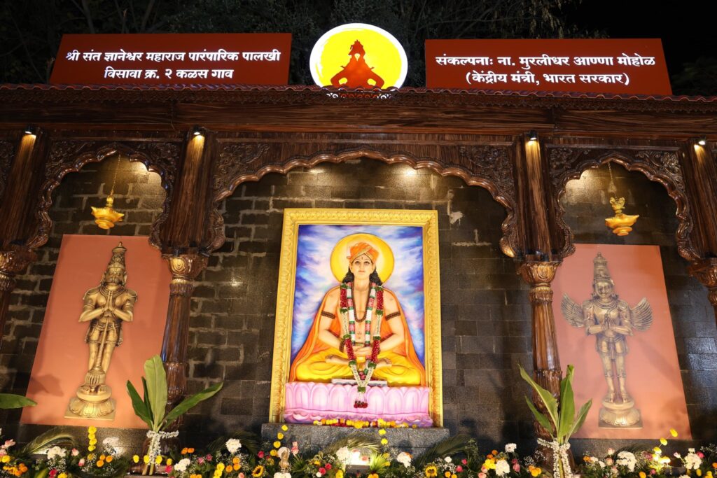 पालखी विसावा क्र. २, कळसगाव, दि. १६ फेब्रुवारी : वारकरी संप्रदायाचा पाया रचणारे थोर संत, संतश्रेष्ठ ज्ञानेश्वर महाराज यांच्या पारंपारिक पालखी सोहळ्यातील विसावा क्रमांक २ च्या ठिकाणाचे लोकार्पण केंद्रीय राज्यमंत्री व पुण्याचे खासदार मुरलीधर मोहोळ व औसा संस्थेचे ह.भ.प. गुरुबाबा महाराज औसेकर यांच्या हस्ते करण्यात आले. आळंदी रोड येथील कळसगाव येथे हा विसावा क्रमांक २