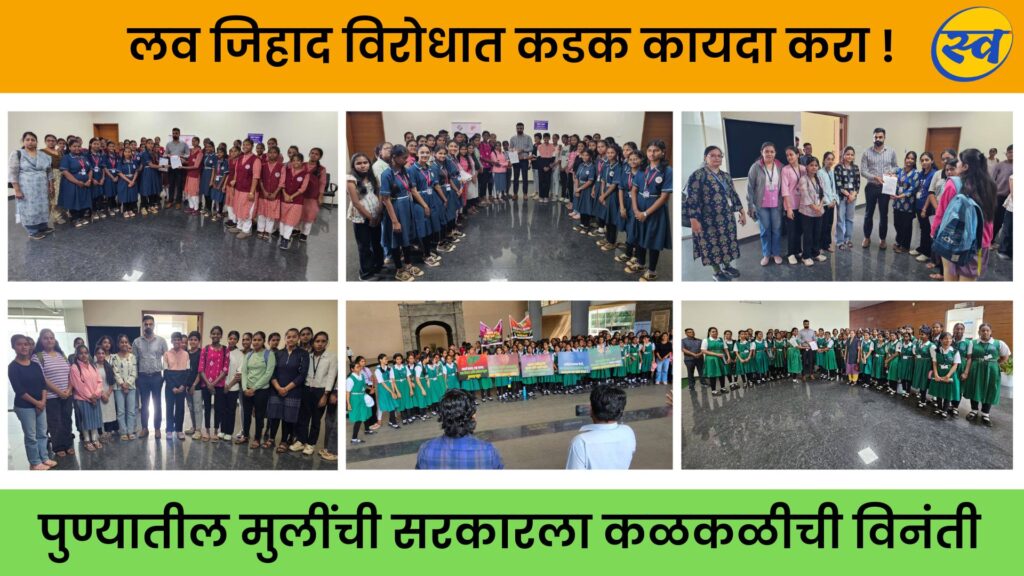 मुली व महिलांच्या सुरक्षेच्या दृष्टीने हा कायदा अत्यंत महत्त्वाचा कायदा आहे हे जाणून घेऊन पुण्यातील नामांकित शिक्षण संस्थांच्या विविध शाळा आणि महाविद्यालयातील 200 मुली एकत्र आल्या व त्यांनी पुण्याचे जिल्हाधिकारी जितेंद्र डुडी यांना निवेदन दिले. या मुली जिल्हाधिकारी कार्यालयात जमल्या व त्यांनी लव्ह जिहाद विरोधात आपले मत मांडले. तसेच हा कायदा झाला पाहिजे असे निवेदन निवेदन व GR ची प्रत फ्रेम करून जिल्हाधिकाऱ्यांना दिली. अतिशय ठामपणे मुलींनी आपली मागणी प्रशासनाकडे पोहोचवली व त्याची पोहोच देखील घेतली.